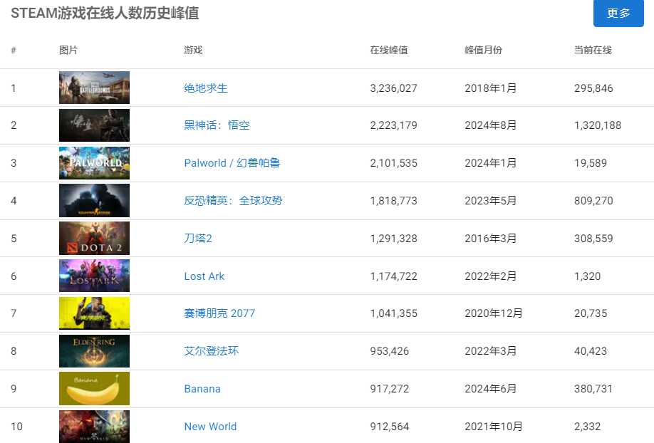 游戏上线当天,Steam同时在线玩家就突破了220万,位居Steam历史峰值第二名。那作为国内首款真正意义上的3A大作,黑神话一经上线便达成了15亿的销售额。